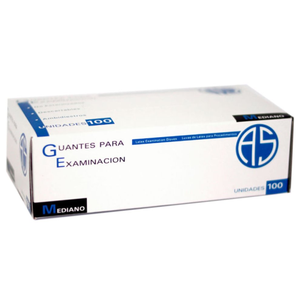 Guantes látex examinación AS, caja x 100 unidades